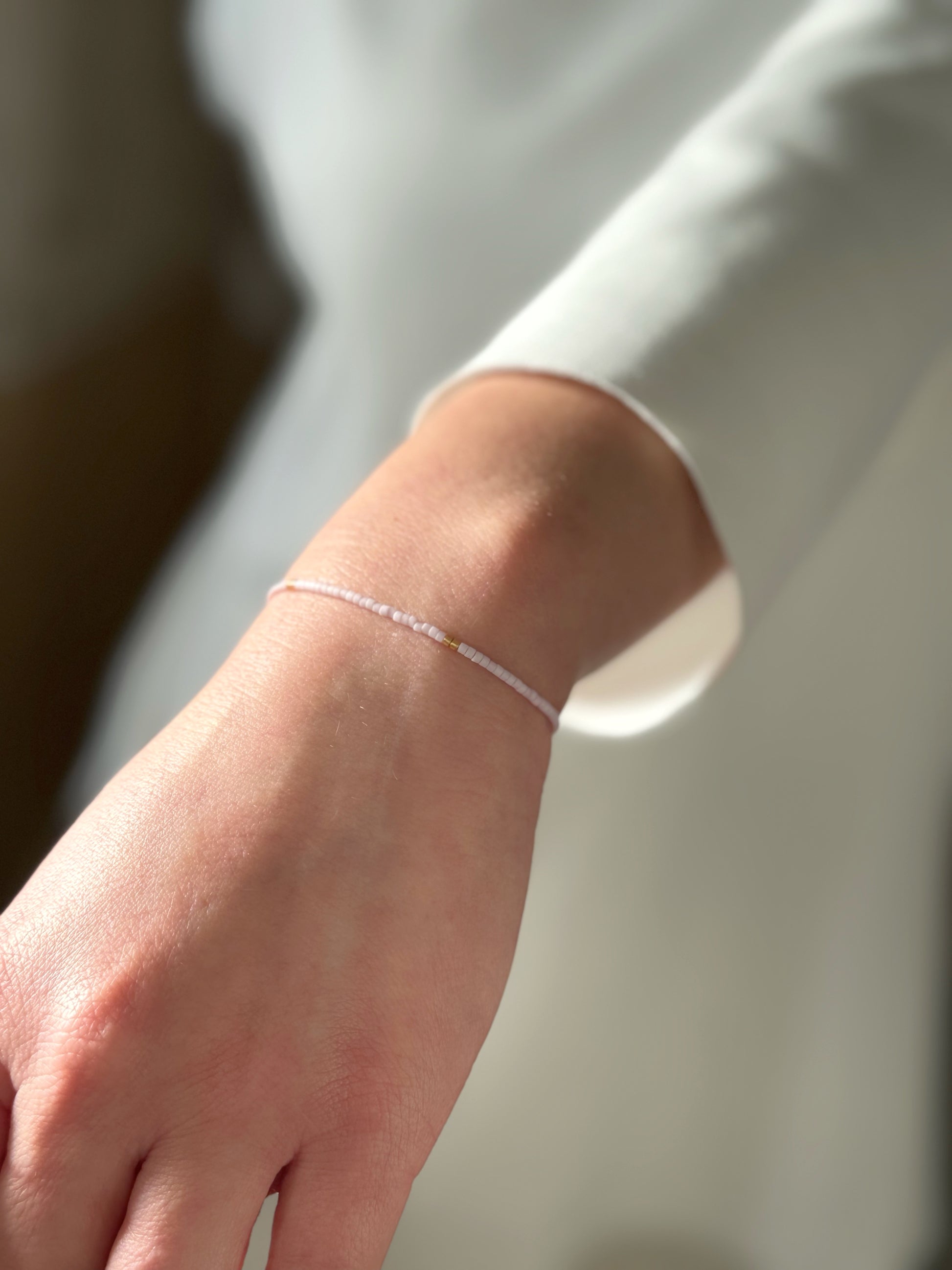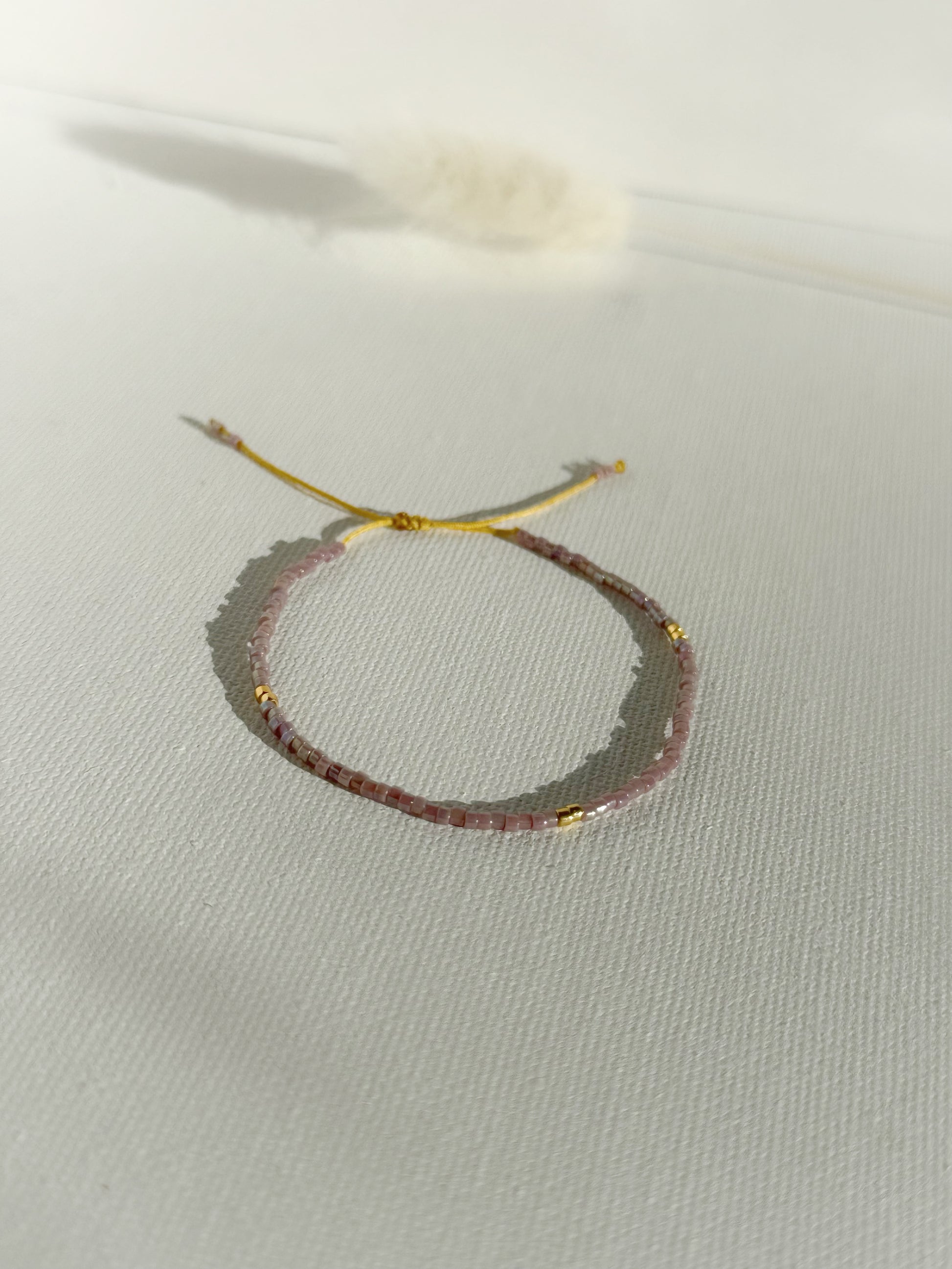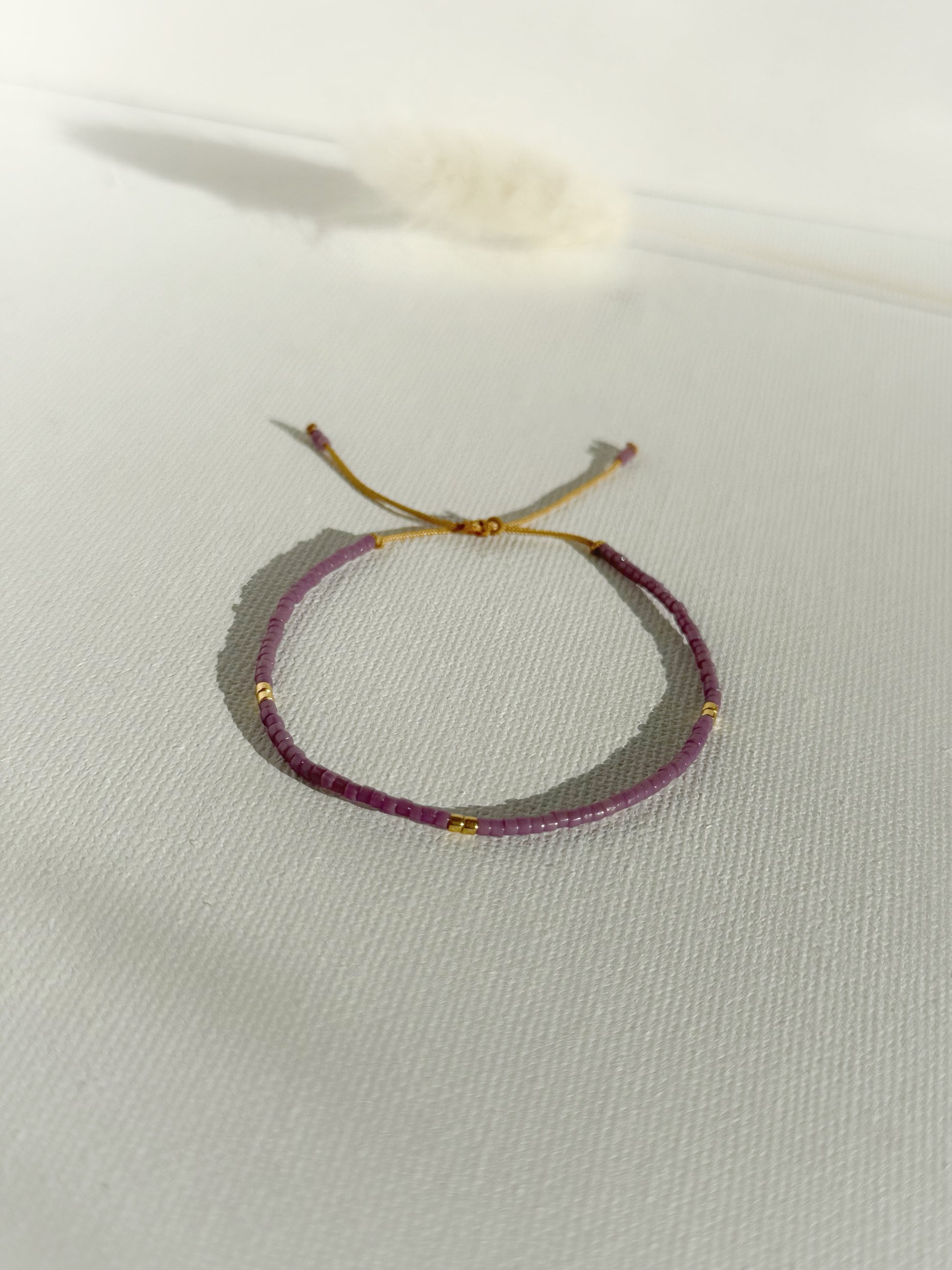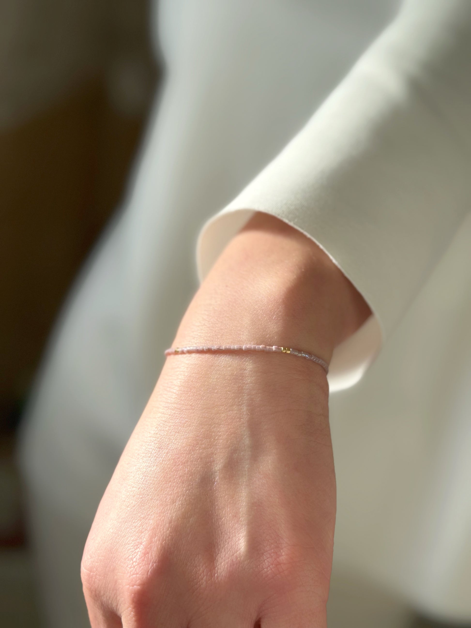 Designed and handcrafted in my Studio in Edinburgh. These bracelets are crafted with Miyuki glass seed beads and delicate gold accents. Finished with a gold nylon cord and adjustable sliding slip knot closure for a perfect fit. Ideal for stacking or wearing alone as a unique statement piece.