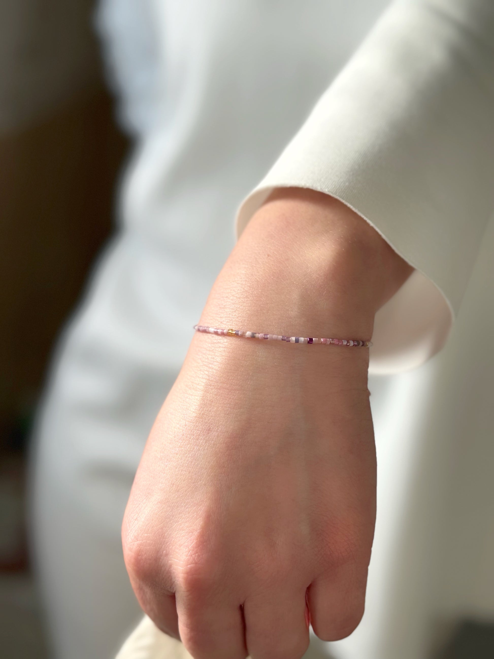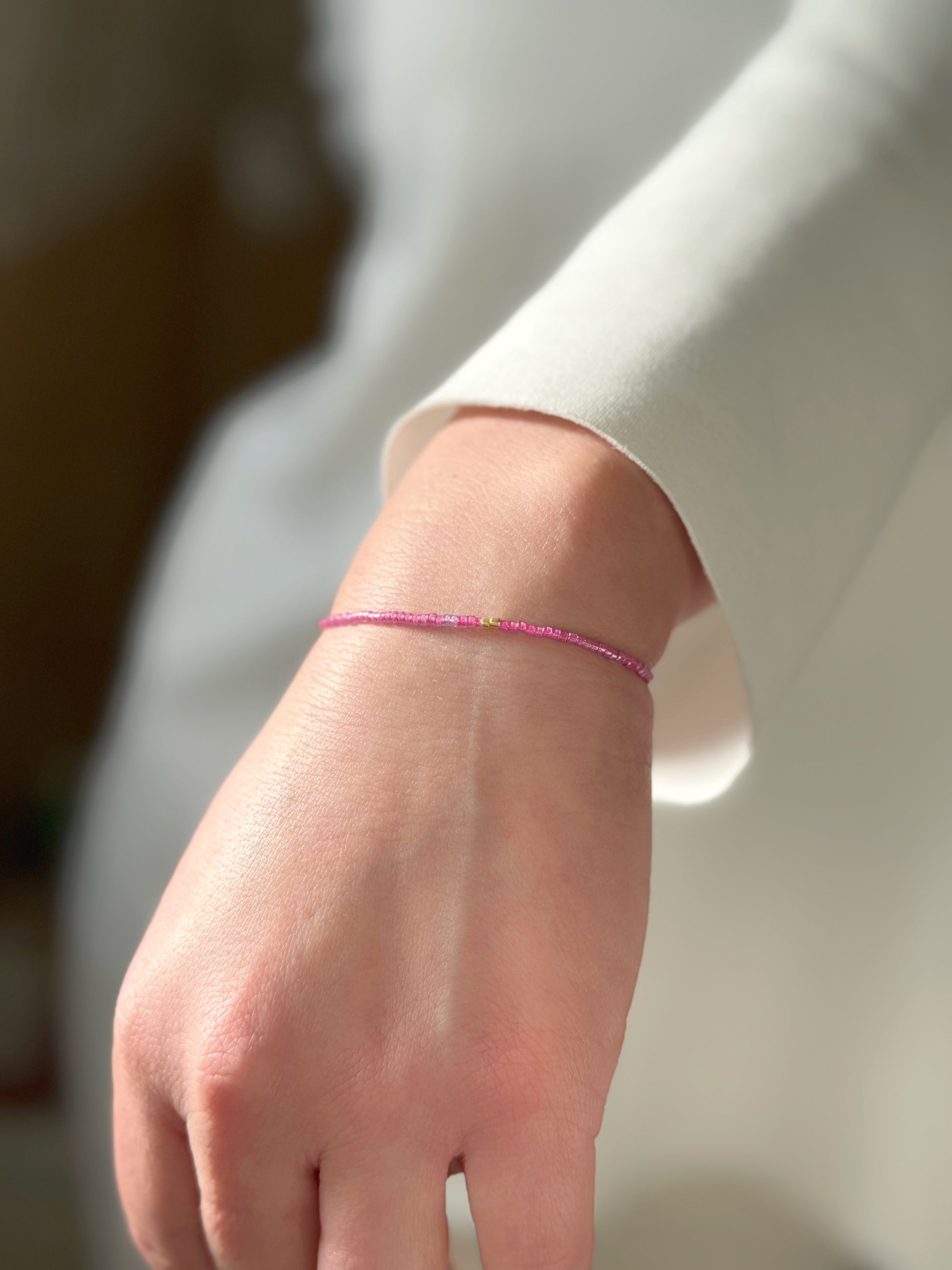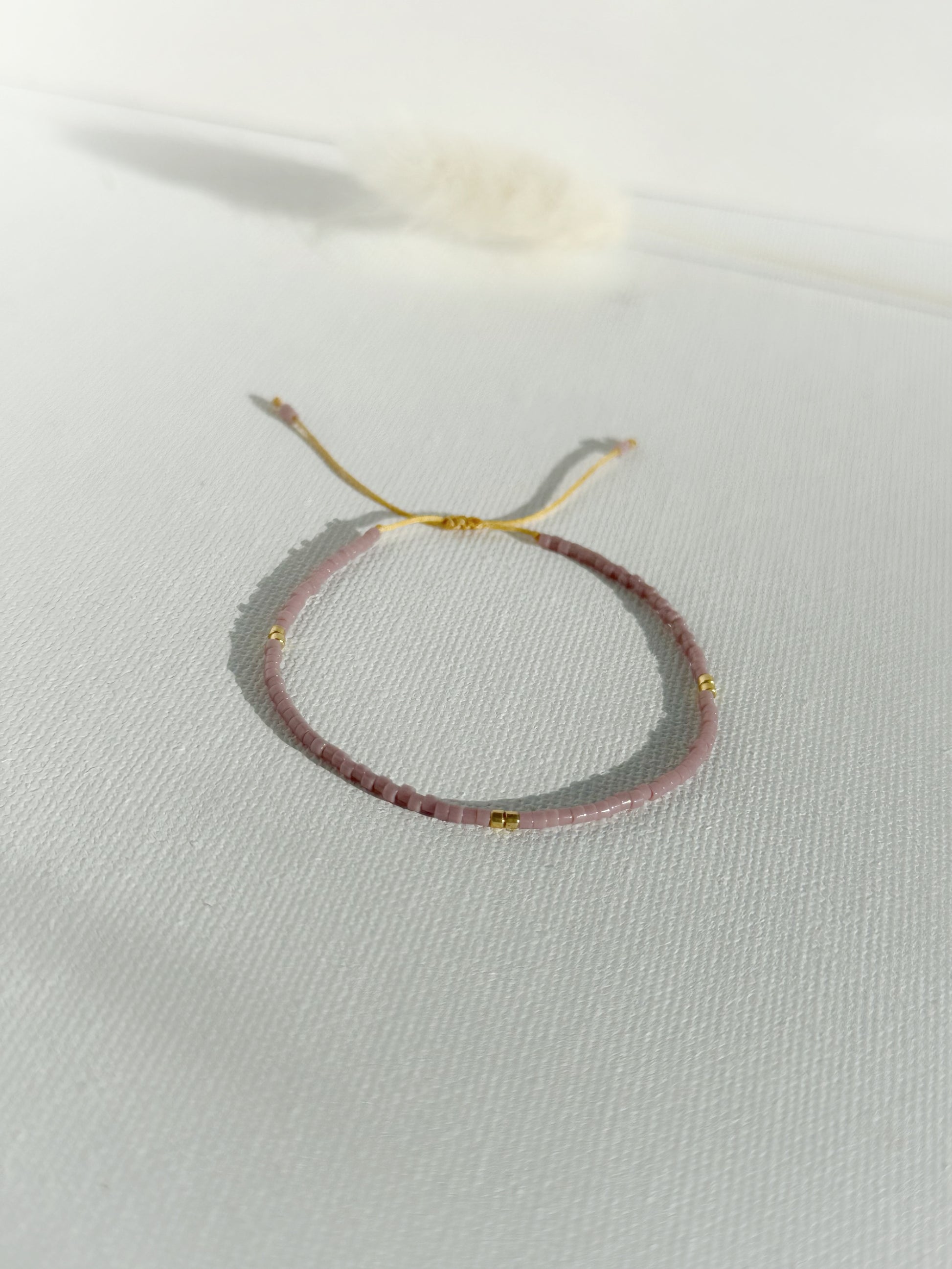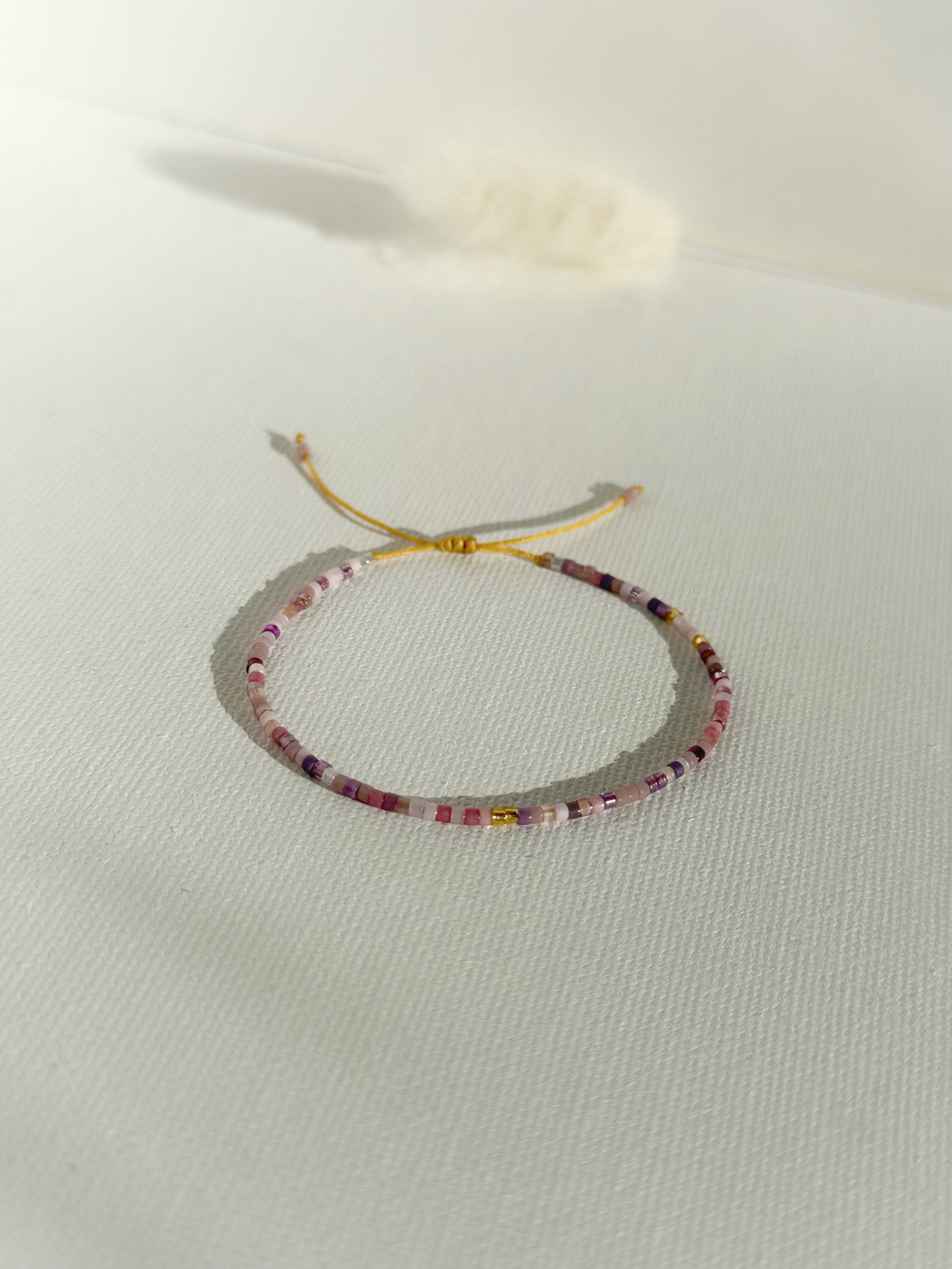 Designed and handcrafted in my Studio in Edinburgh. These bracelets are crafted with Miyuki glass seed beads and delicate gold accents. Finished with a gold nylon cord and adjustable sliding slip knot closure for a perfect fit. Ideal for stacking or wearing alone as a unique statement piece.