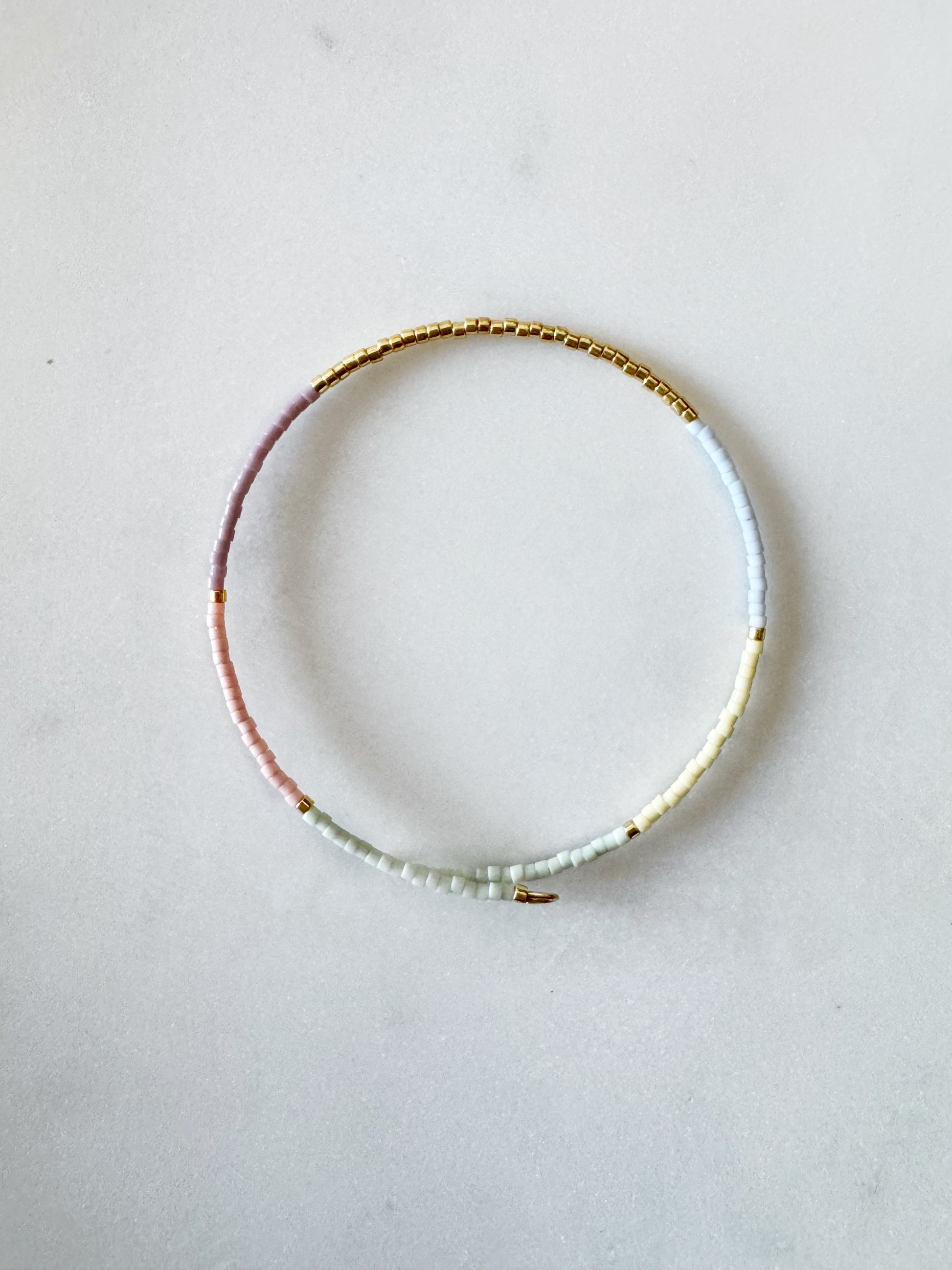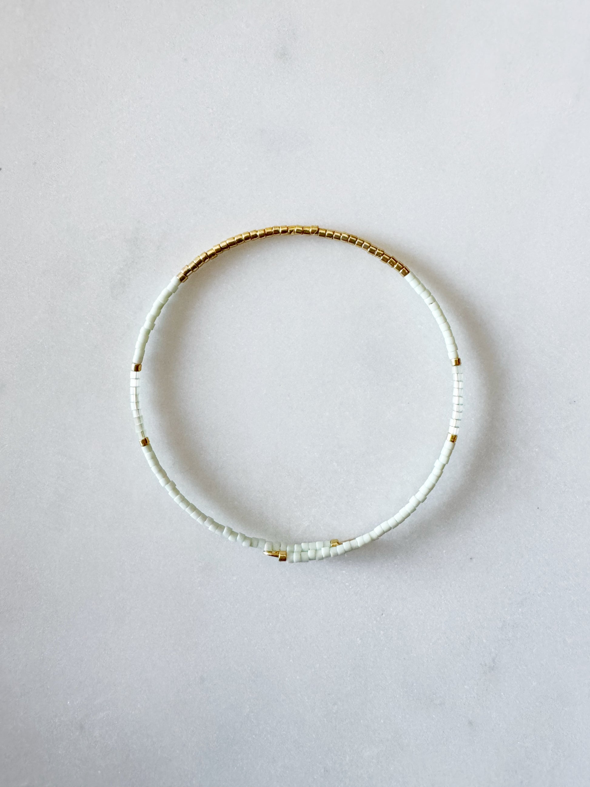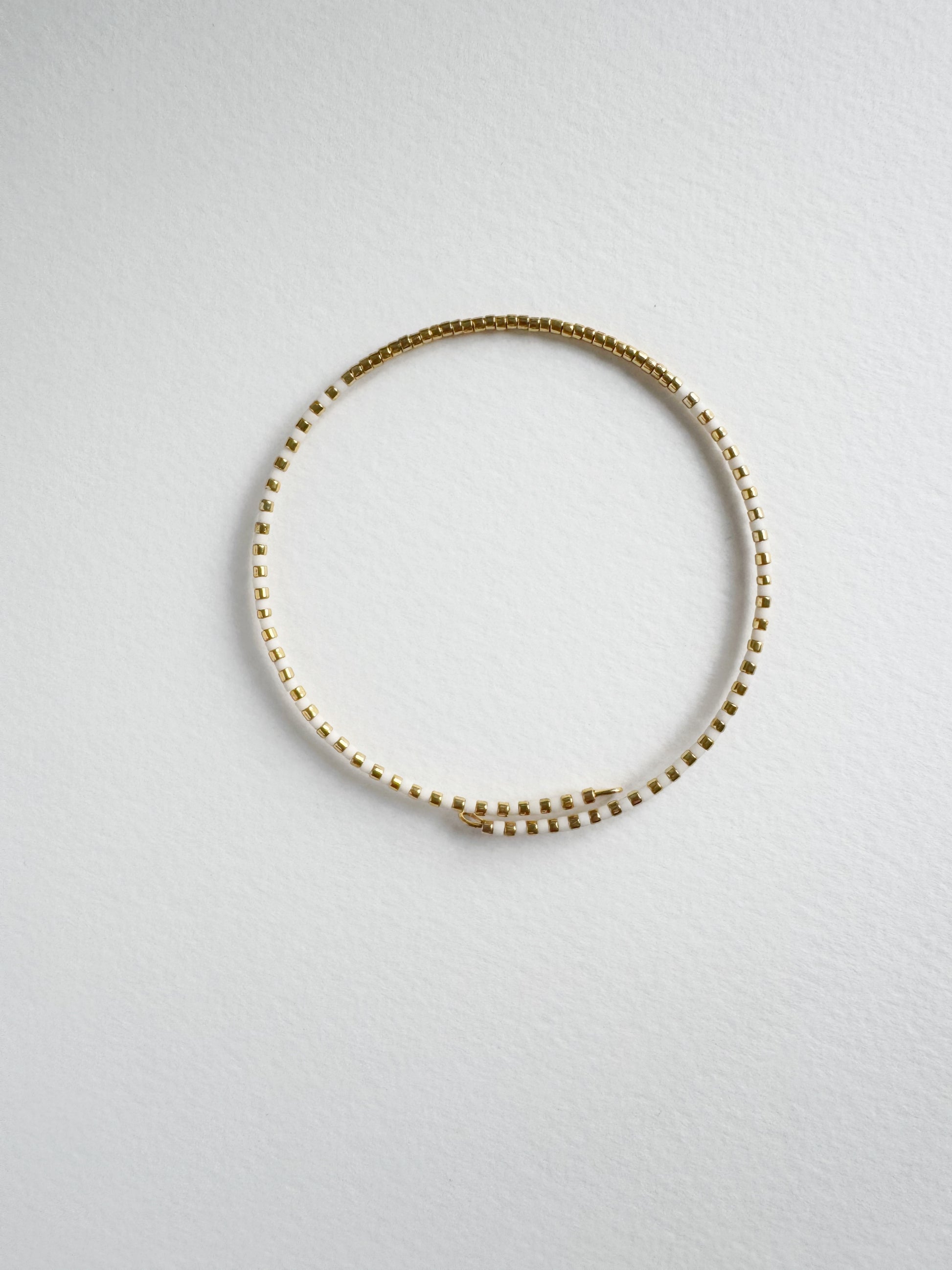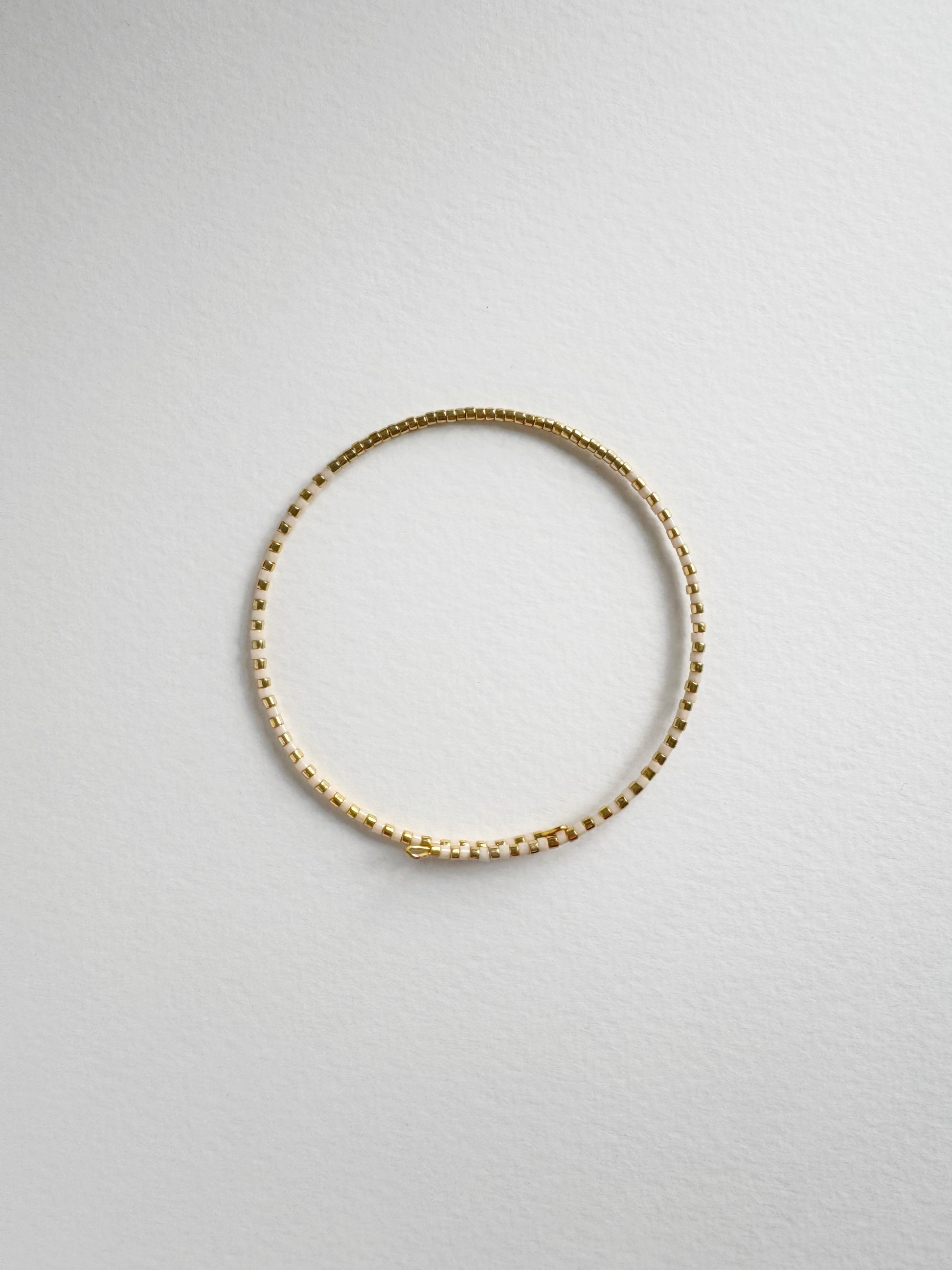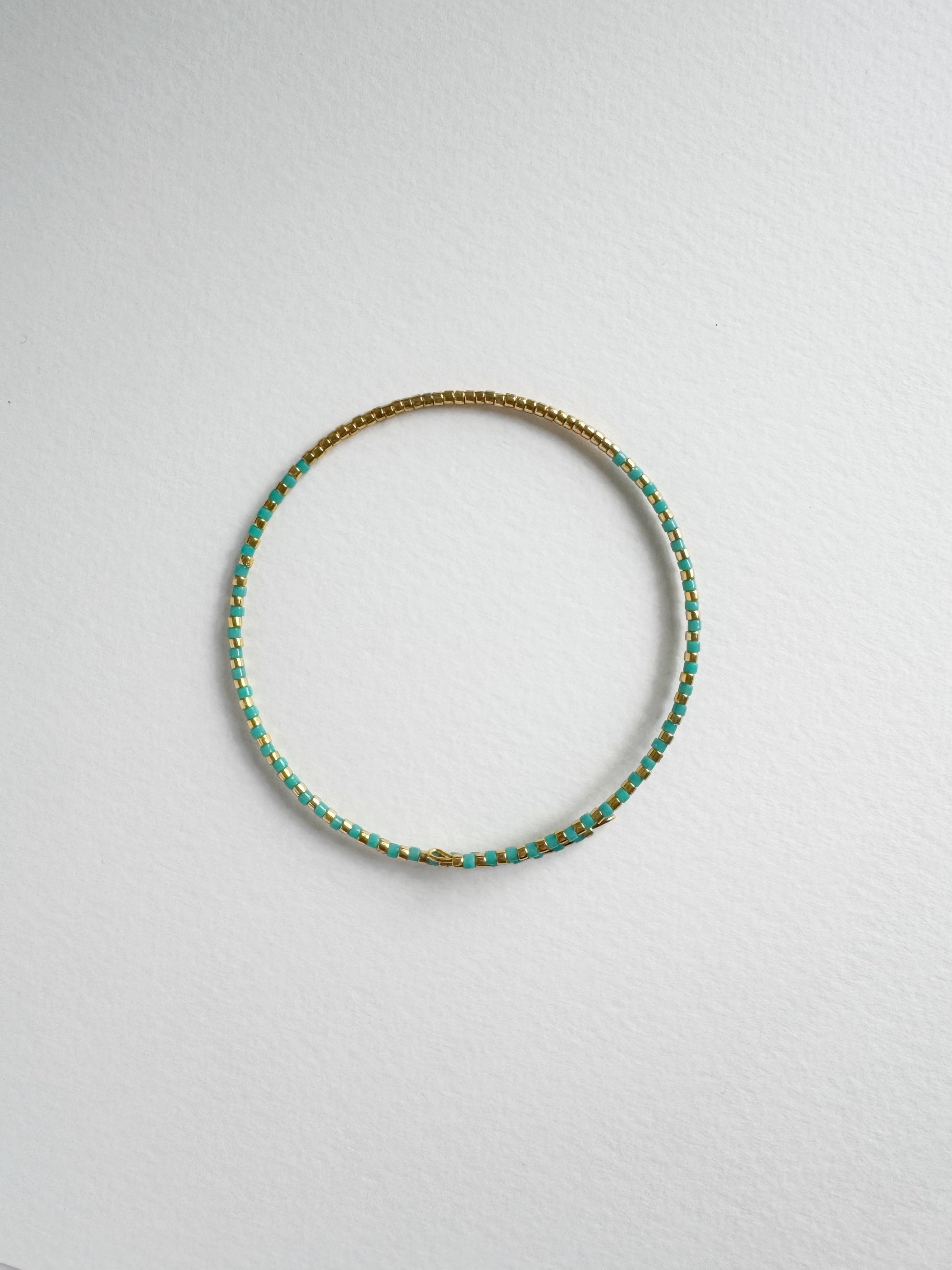 Handmade with stainless steel memory wire and Miyuki glass beads, HALO bangles are lightweight, hypoallergenic, and easy to wear. Understated and elegant, perfect for everyday wear or layering with other pieces. One size fits most (5.5–6cm), thanks to the flexible memory wire.
