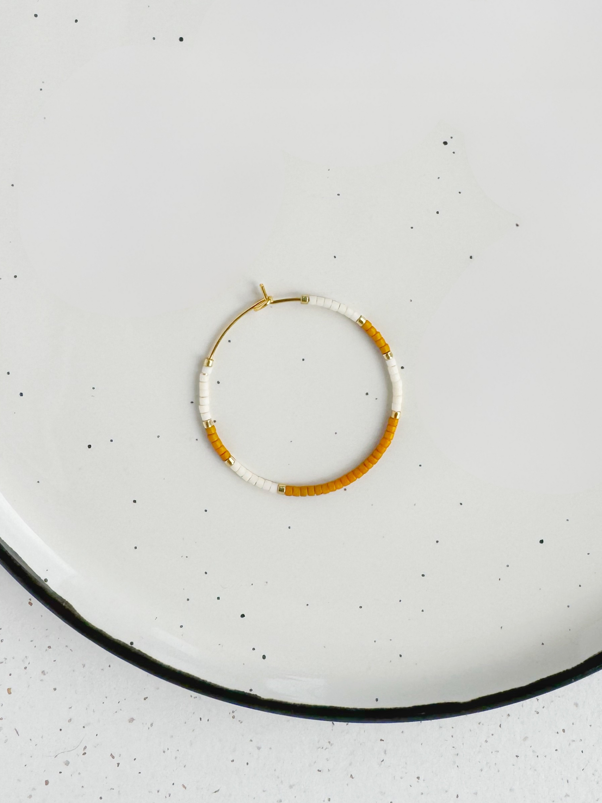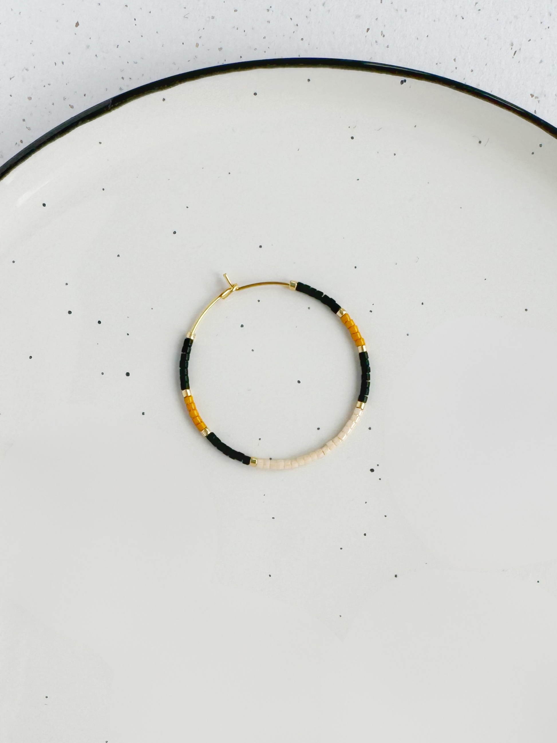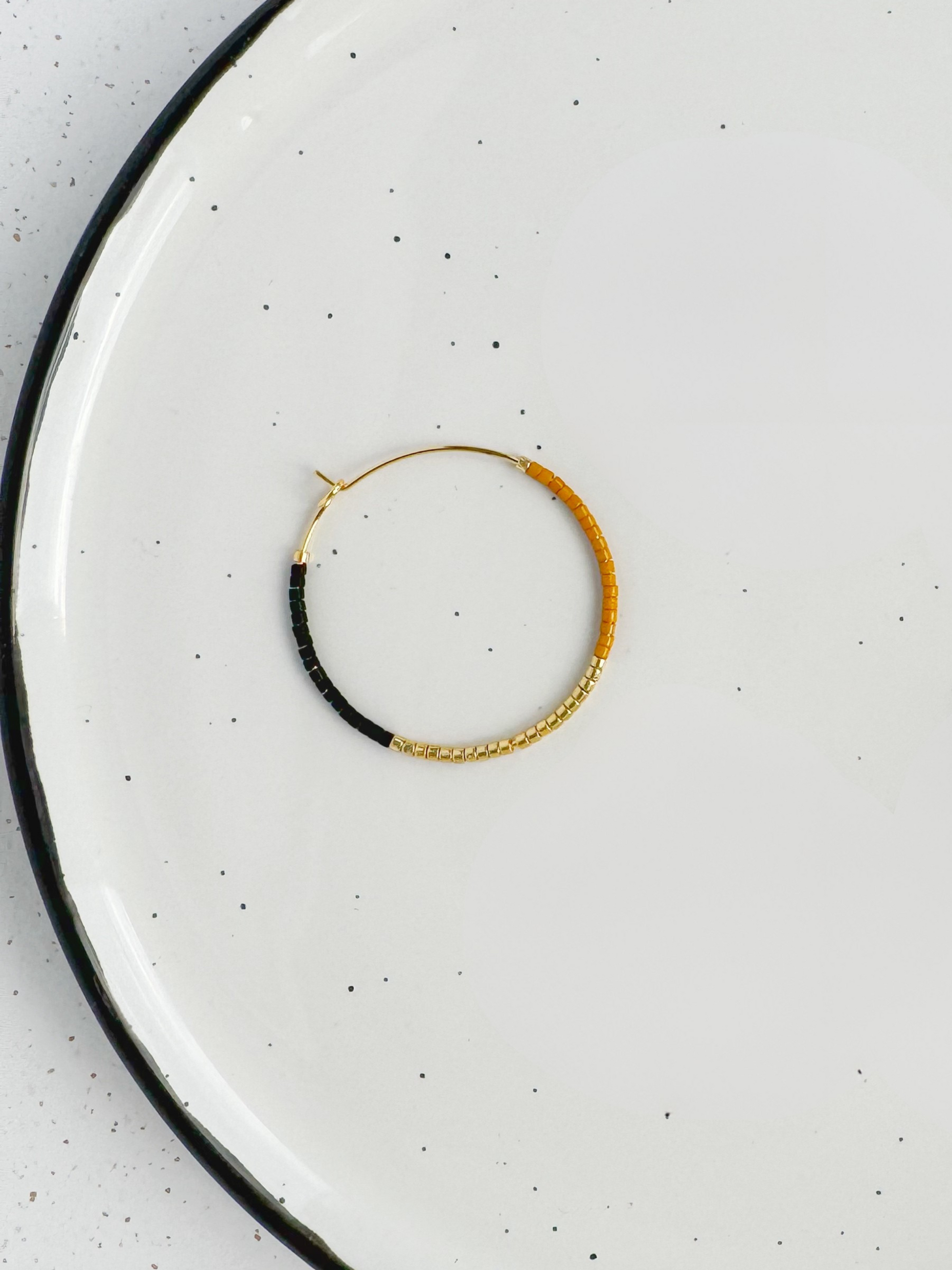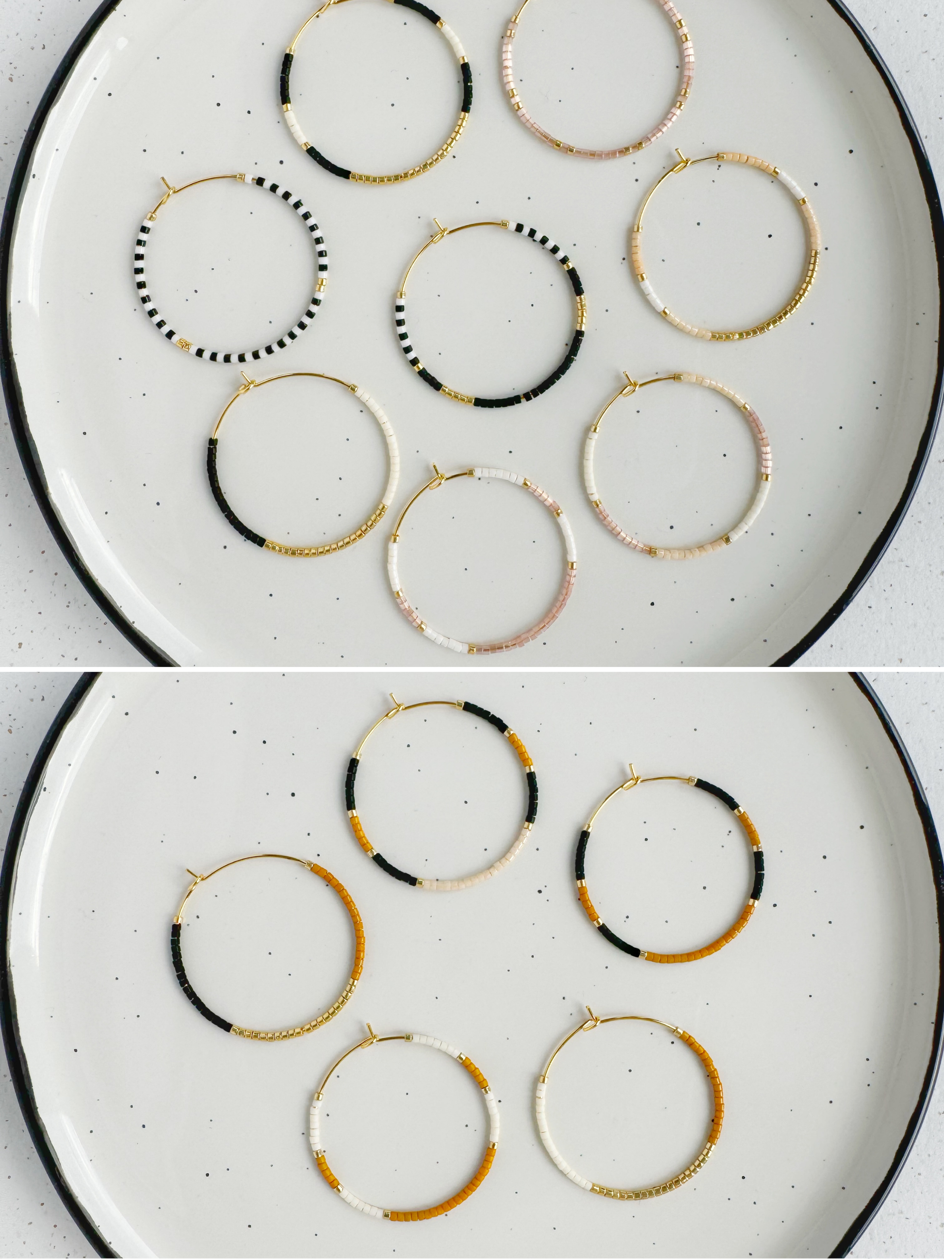 Made with tiny glass Japanese Miyuki beads, Nickel-free 24Kt gold plated earring hoops.
